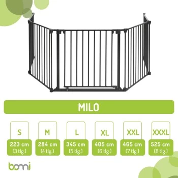 Unser BOMI Hundeschutzgitter Milo bietet Ihnen eine zuverlässige Lösung, um Ihre geliebten Haustiere sicher in Ihrem Zuhause zu halten. Das vielseitige Absperrgitter wurde ursprünglich als Kaminschutzgitter entwickelt, erfüllt jedoch auch alle Anforderungen, um Ihren Hund sicher und geschützt zu halten. Mit seinem robusten Design und der einfachen Handhabung ist das Hundeschutzgitter Milo die ideale Wahl für Tierbesitzer.