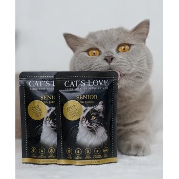 Premium Alleinfuttermittel für ältere Katzen ab dem 10. Lebensjahr in natürlichem Gelee – optimal an den Nährstoffbedarf Ihrer Katze angepasst. Die CAT’S LOVE Menüs bieten Ihrer Fellnase genau das, was sie von der Natur aus benötigt – Lebensnotwendige Proteine in ihrer natürlichen Form aus Fleisch.