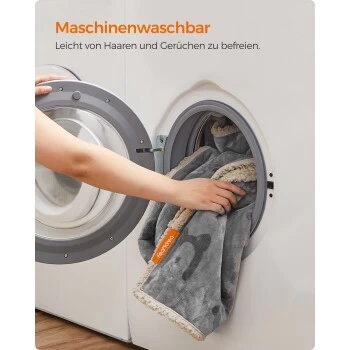 – Um Ihren pelzigen Freunden dauerhaften Komfort zu bieten, waschen Sie die Decke bitte mit kaltem Wasser und trocknen Sie sie auf niedriger Stufe oder an der Luft.
