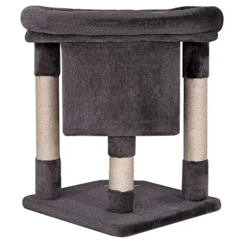 Mit diesem Katzenspielhaus aus weichem Plüsch bleiben keine Wünsche Ihrer Samtpfote offen. Die kuschelige Höhle lädt zum Ausruhen und Verstecken ein und die beiden hängenden Plüschbälle sorgen für den nötigen Spielspaß. Das einladende Liegebett ist ideal für die Ruhezeiten und das Beobachten der Umgebung. Die Stämme aus robustem Sisal unterstützen die Krallenpflege und halten Ihre Katze somit von den Möbeln fern.
