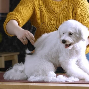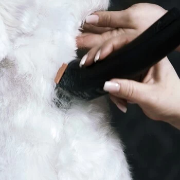 Beste Voraussetzungen für die Schur mit der Maschine: Fell auskämmen, grobe Verfilzungen mit einer passenden Tierhaarschneidemaschine und einem Feinzahnschneidsatz entfernen. Tier baden und sehr gut trocken föhnen. Dabei ausreichend Abstand halten und immer mit dem Haarwuchs bürsten und trocknen. Schneidsatz ölen.