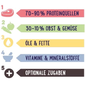 Nutzen Sie die Vorteile unseres BARF- Rechner um ganz einfach in 4 Schritten die Tagesration zu ermitteln.
